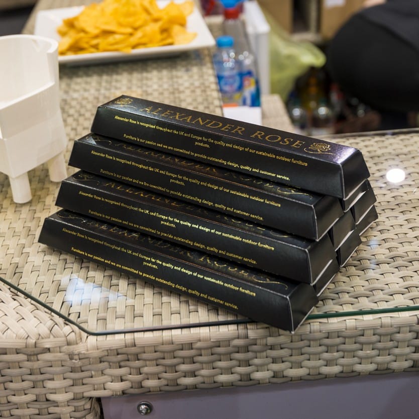 Award winning, freshly made chocolate. Ooh, this ones a biggie :-) Approx box dimensions 245mm long x 43mm wide x 25mm tall in a long printed box weighing in at 100g in a range of colours. Your logo/message foil printed on each card wrapper. Choice of box colours: Gold, Black, Cream, Dark Green, Red, Silver, Blue, Orange, Purple, Lilac, White, Spring Green, Brown, Pink. Choice of print colours: Metallic Gold, Metallic Silver. However, if you would like a bespoke made bar to your logo, size and design just let us know and we can tailor make your own customised bars and boxes. If you send us the logo/image and text we can send you proof back to see and alter.