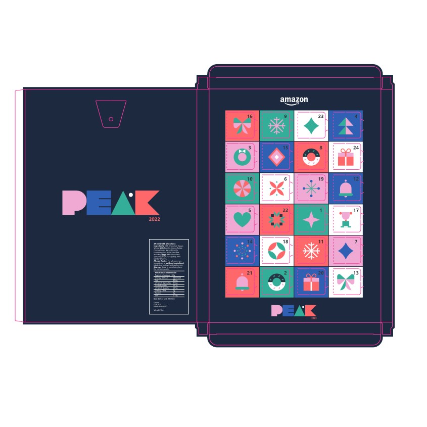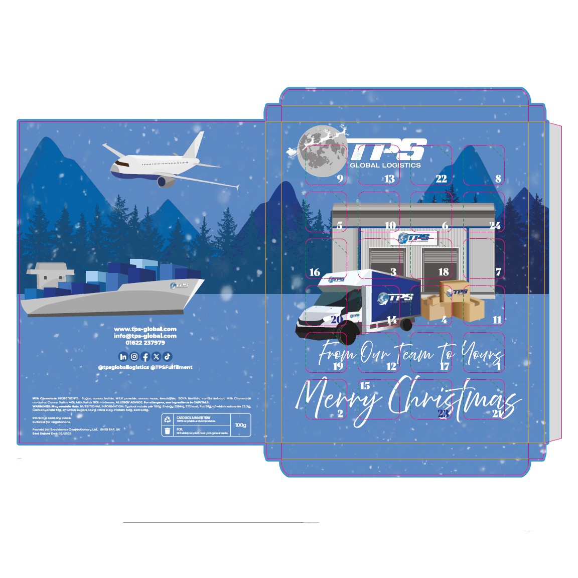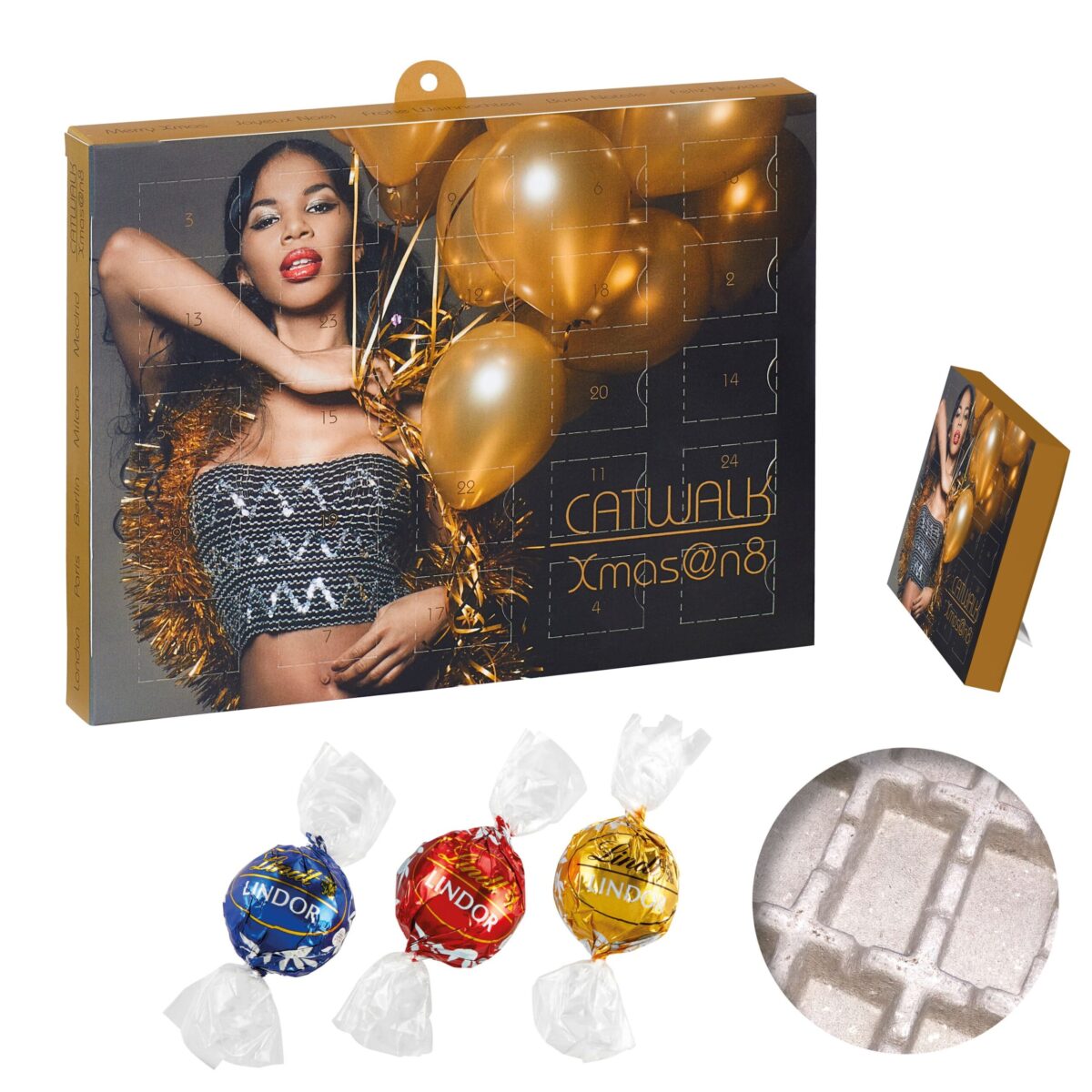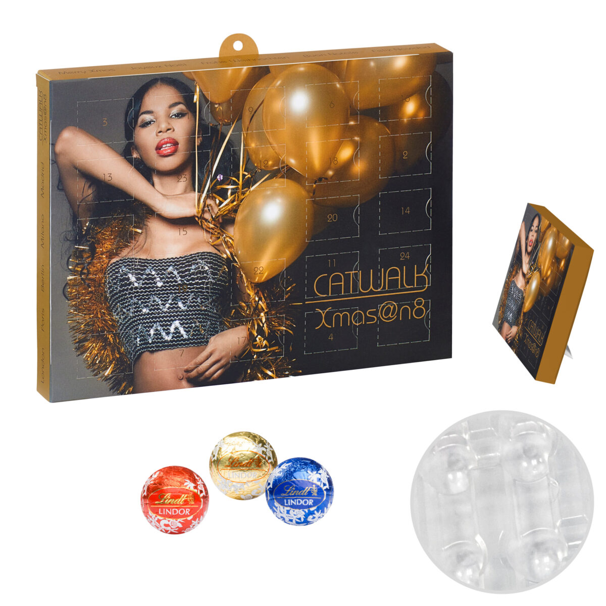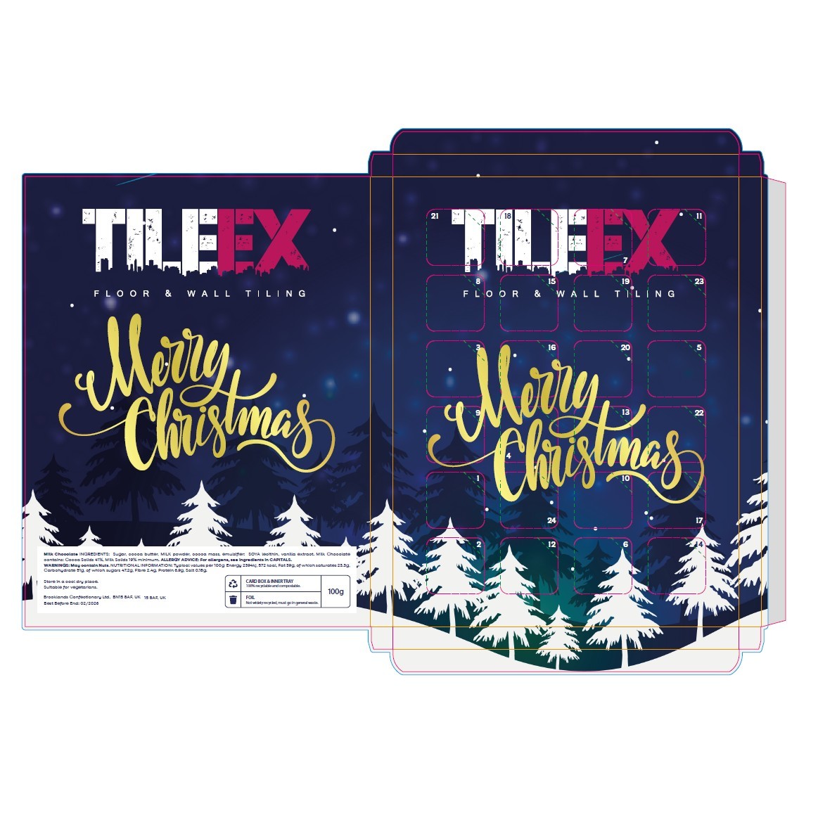 • 24 doors containing 24 luxury Christmas-themed milk chocolates