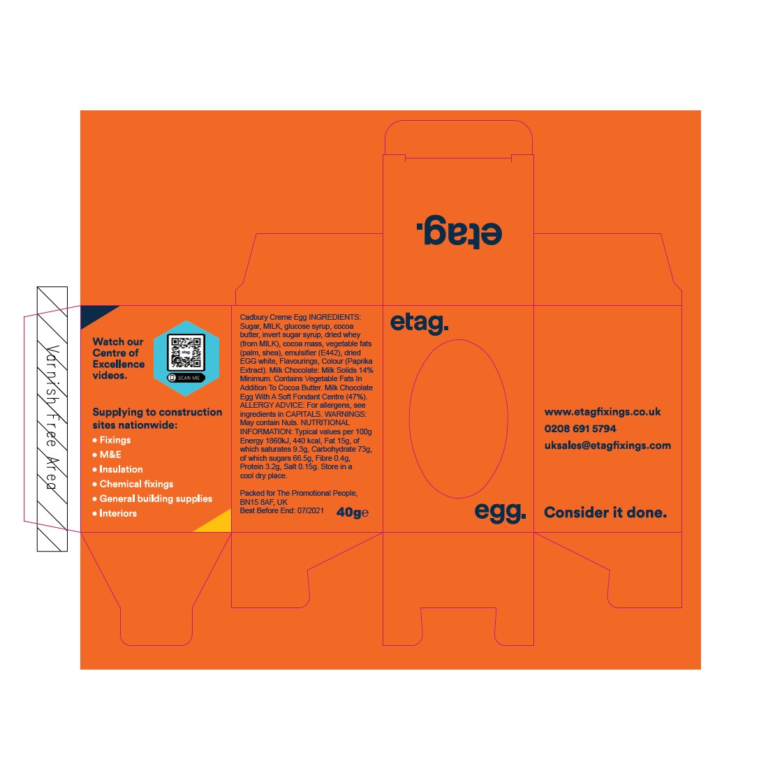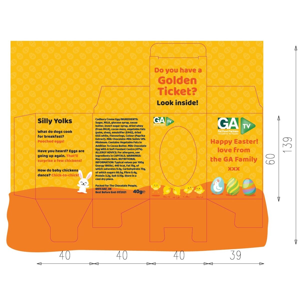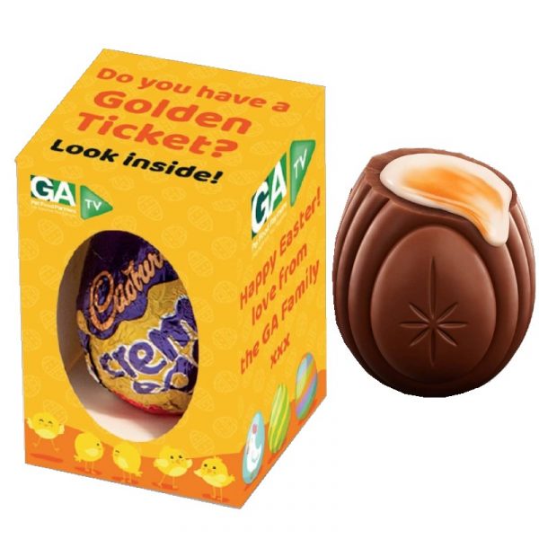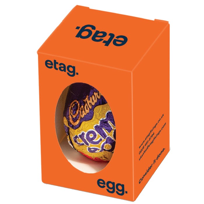 Cadbury Creme Egg in Full Colour Box How do your customers eat theirs? Let the fun begin with your own branded cream egg. Imagine engaging with your customers on LinkedIn, Instagram, Twitter, Facebook, etc. with a ‘How do you eat yours campaign with your very own branded Cream Egg. This is an opportunity to promote your company in a fantastic fun way. I mean, who wouldn’t join in? All we need to do is design your full colour egg box and get it in production. You can have them delivered to you and then you can distribute them by hand as you visit the customer. This then gives you a great photo opportunity. Or, we could send them out to individual addresses and office addresses directly to your customers. Each box could have a personalised insert with details about the campaign and how to join in. Please ask us for a quote of the volume you thinking about by either using the form below or just giving us a call at 01903 750999 If you send us the logo/image and text we can send you proof back to see and alter. Just contact us to discuss and we can do the rest. We look forward to hearing from you.